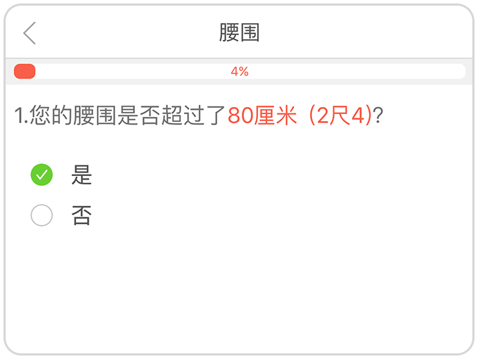 1.健康问卷:首次注册后需要填写健康问卷,完善的健康问卷是我们为您提供健康分析与指导的基础。健康问卷共包含21道题,全部填写大约需要5分钟,建议每6个月更新一次问卷。