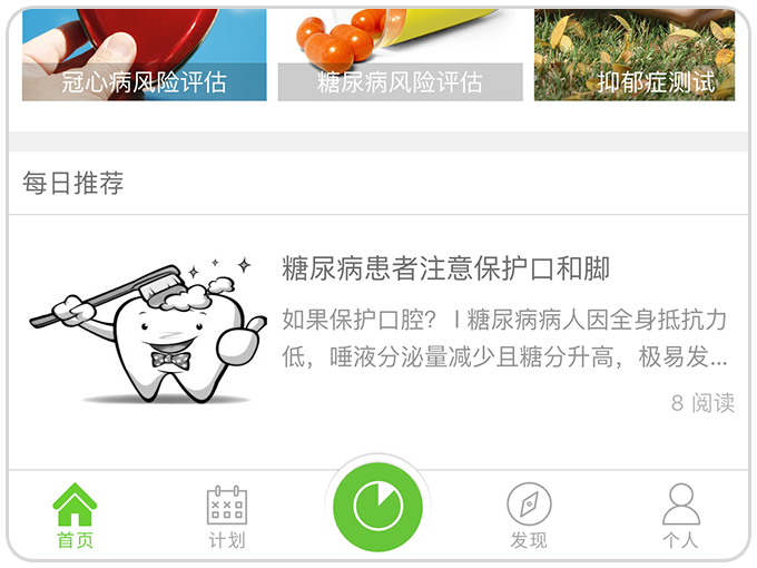 6.每日推荐:每日为您推荐最新的健康动态、最靠谱的健康资讯。
