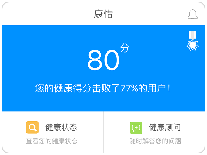 7.消息提醒:首页右上方“铃铛”标识提示最新接收到的消息,消息可能来自您的健康顾问,好友的点赞等。