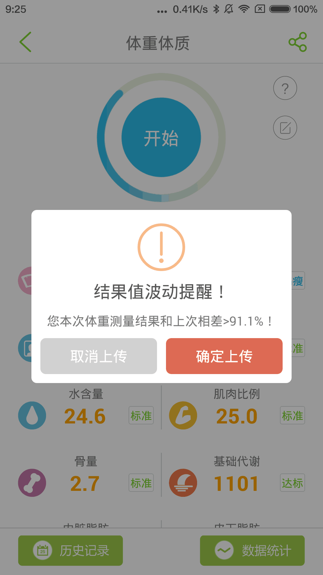 解决: 正常情况下,一个人的体重短期内不会大幅度变动,这个提示可以避免不同人上传数据至同一账号,或是错误测量方式。之所以会收到这样的提示,应该是账号没有变,不同的人在测量。请确定,测量方法正确,并且每人使用自己的账号。