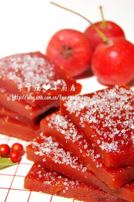 5. 倒入白砂糖,我的白砂糖用量不多,做出来的山楂糕还是有些酸,所以洒了白糖一起吃。 | ![]() |