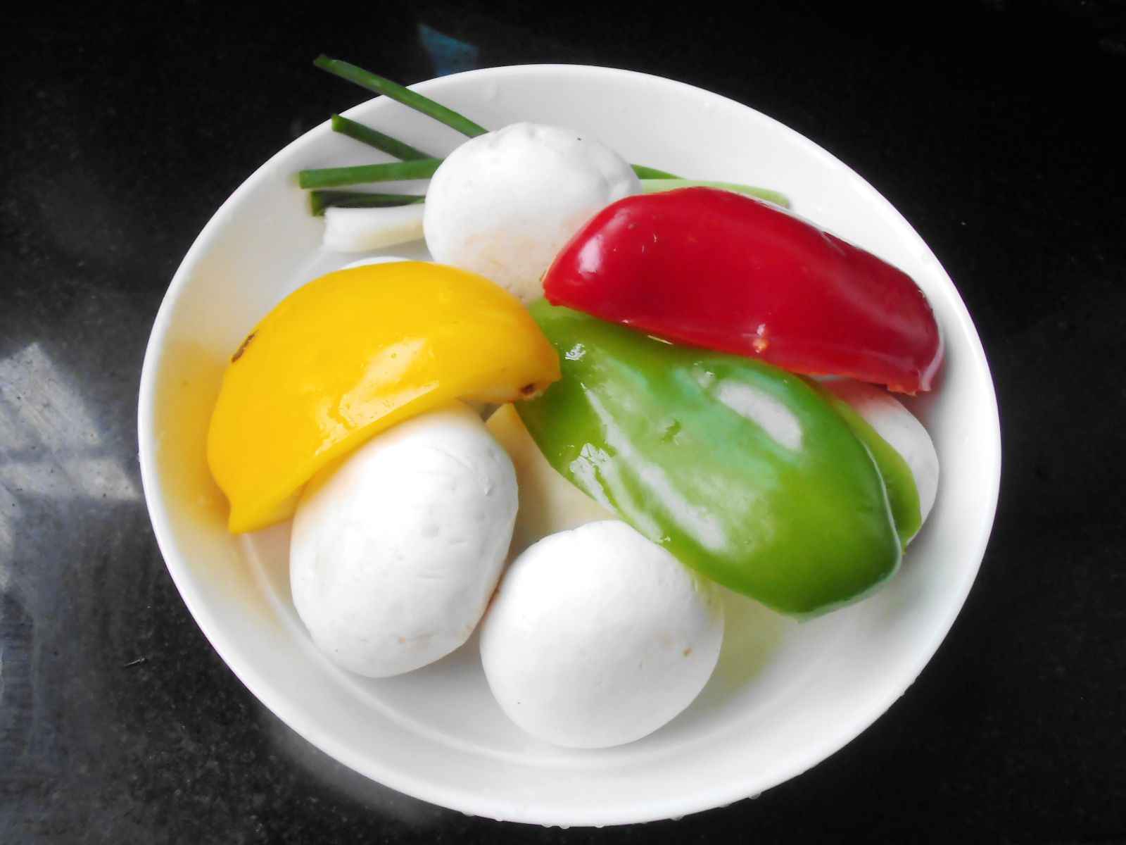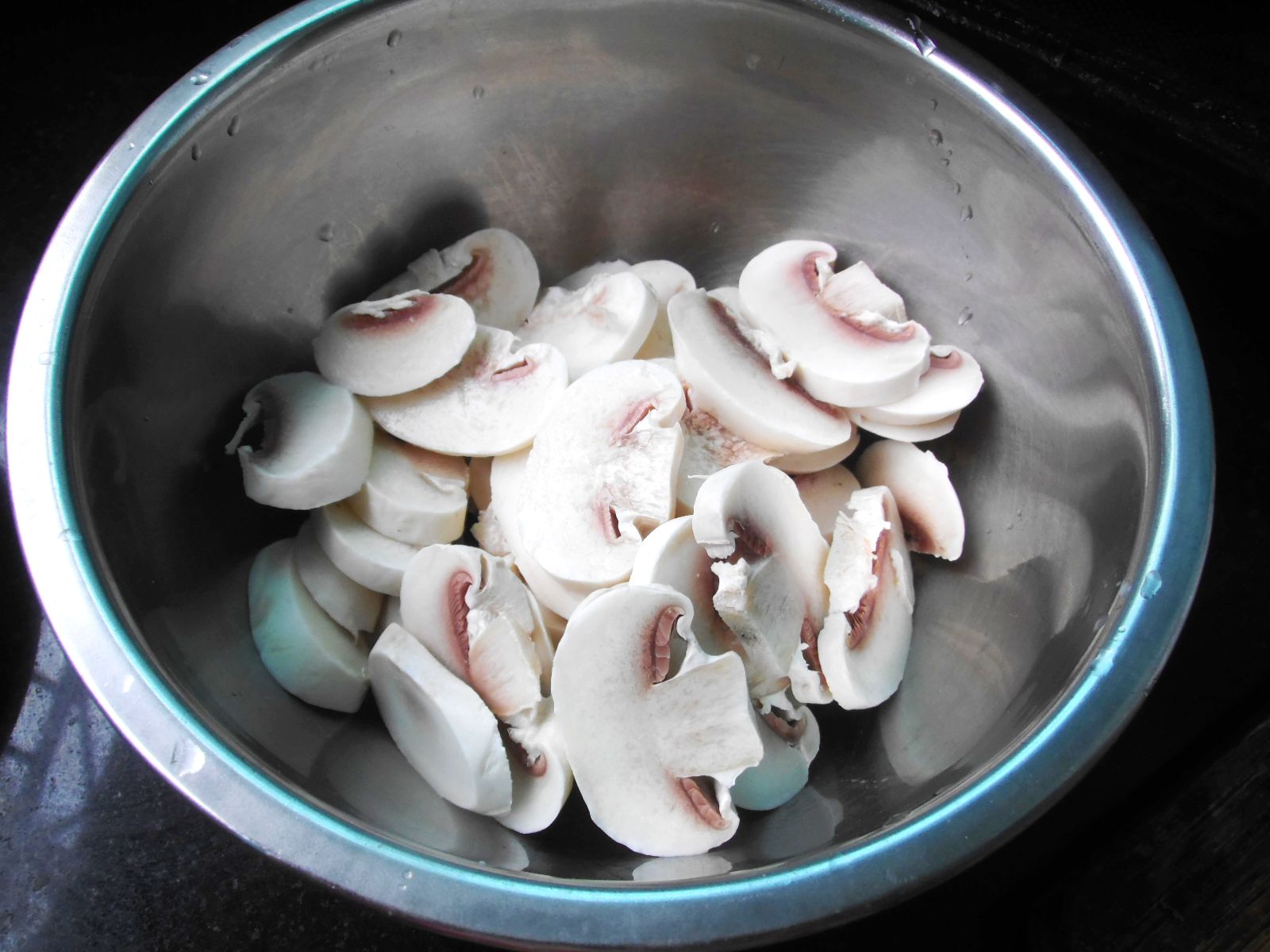 5. 口蘑放开水中焯烫一下, 然后用凉水过凉;