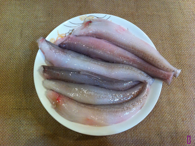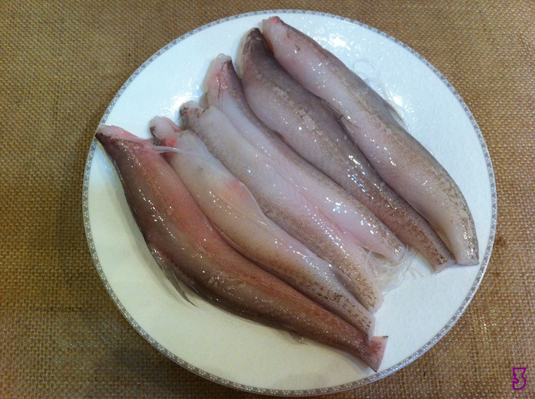 1. 九肚鱼洗净去头,鱼身上擦少许盐,腌15分钟: