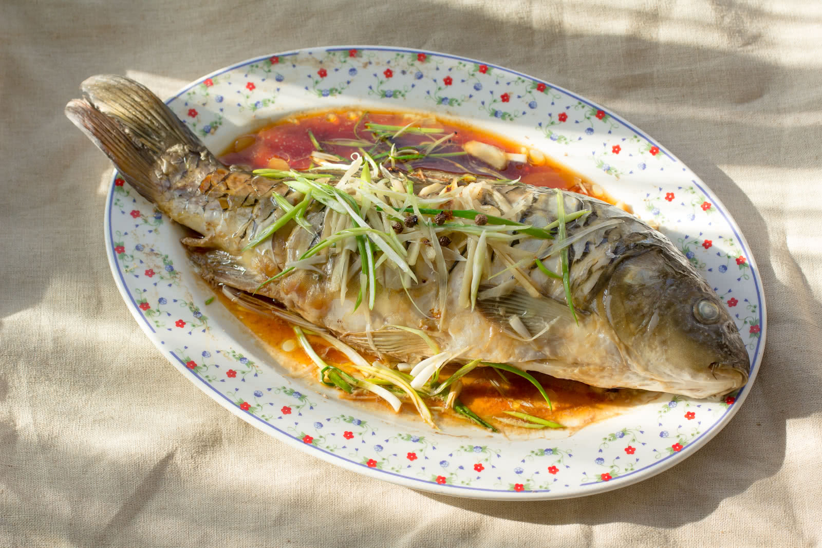 8. 将油烧至很热的时候,浇在鱼上就可以开吃了。 | ![]() |