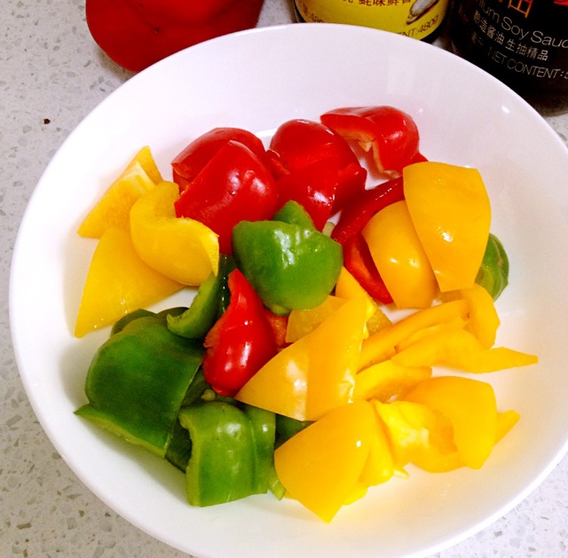 5. 彩椒切滚刀块备用。 | ![]() |