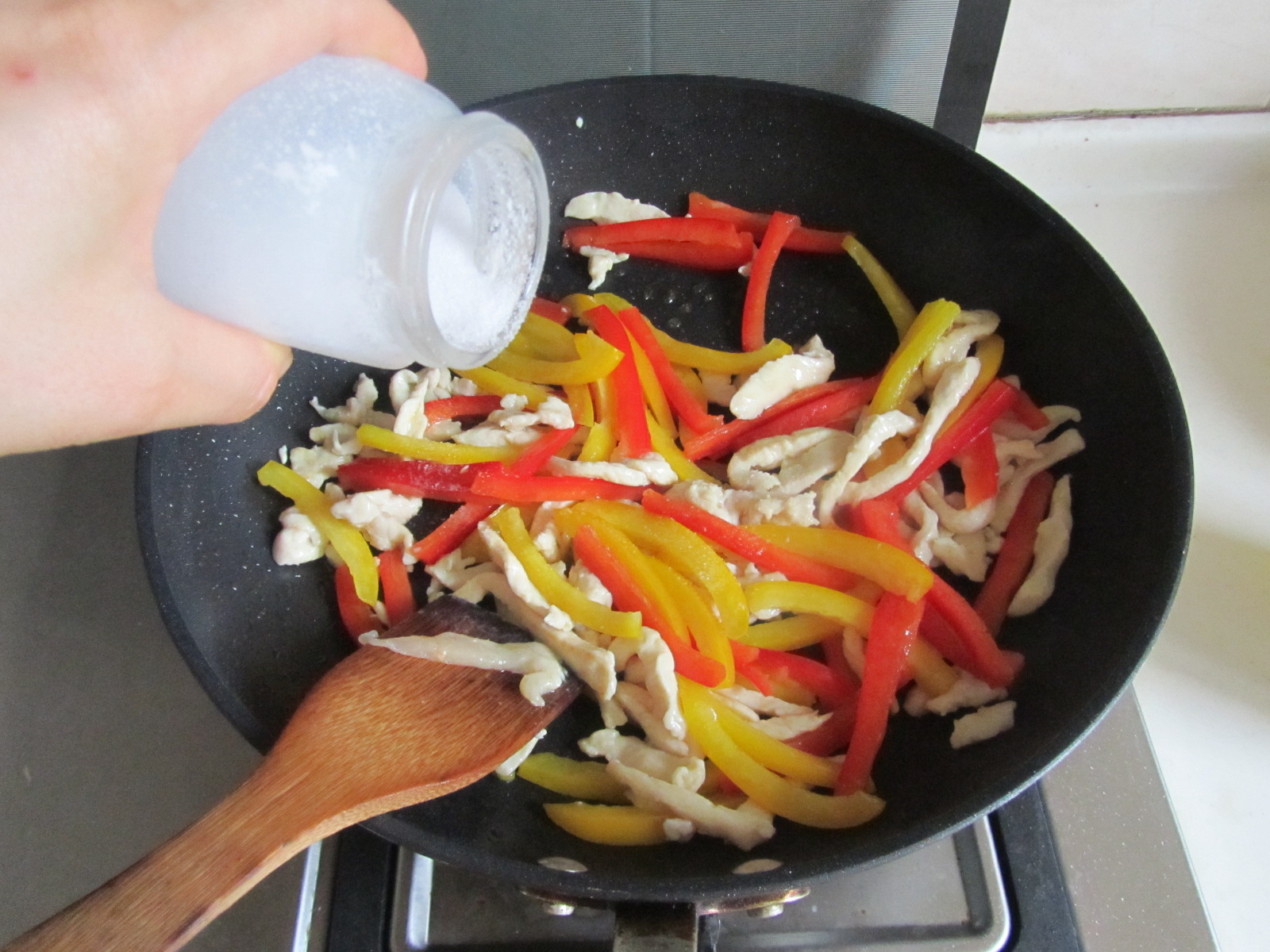 7. 翻炒几下后加入盐调味;